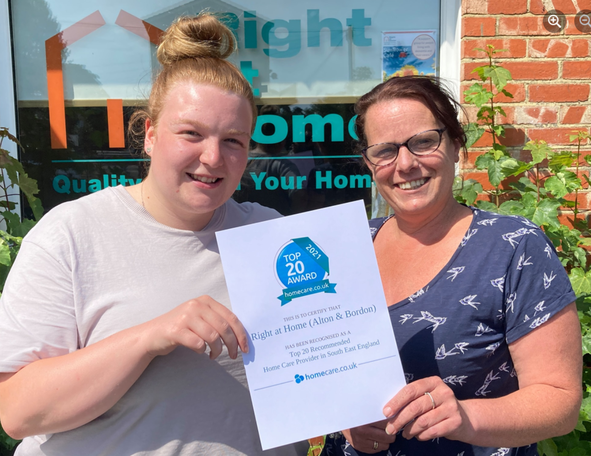 Claire Skilton, the registered manager for Right at Home’s Bordon and Alton branch says: “My entire staff team and I are absolutely thrilled to be in the top 20 home care providers. The South East is a huge region with over 1,500 home care providers. I witness our Carers do their utmost every day because they know how important it is for clients to live comfortably and safely in their own homes and to benefit from companionship and excellent care. To receive the endorsement of our wonderful clients and their families gives us an extra boost!”