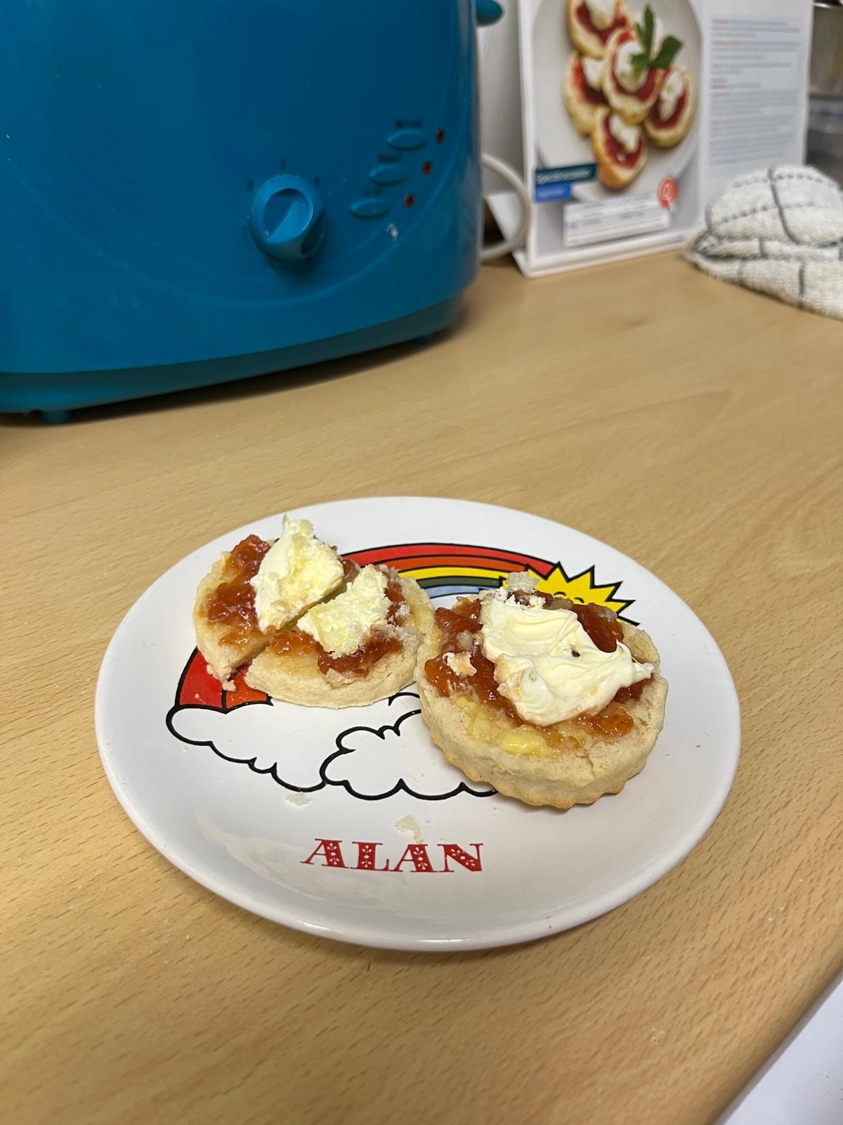 5. Serve one scone per person with one tablespoon of your favourite jam and two tablespoons of clotted cream.