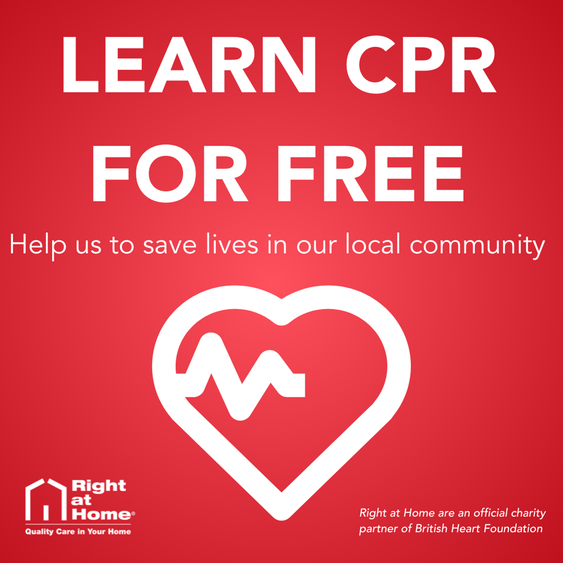 The British Heart Foundation has equipped Right at Home with additional information leaflets on how to keep your heart healthy, including understanding your blood pressure, vascular dementia and how to help reduce your risk of having a heart attack. It has been a great addition to the free community events we hold, to be able to hand out any advice and help those we care for.