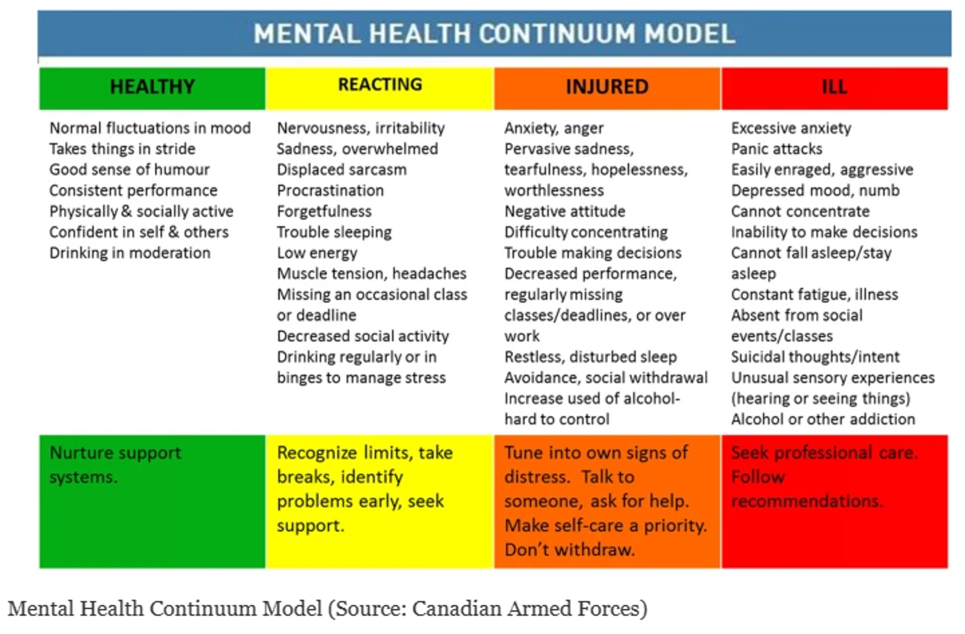 There are differences, there is a continuum. One side is the Mental Health, sadness, nervousness and things that can be reversed. The other end is the Mental Ill Health, the suicidal thoughts, bipolar, schizophrenia, the mental ill health that requires intervention.