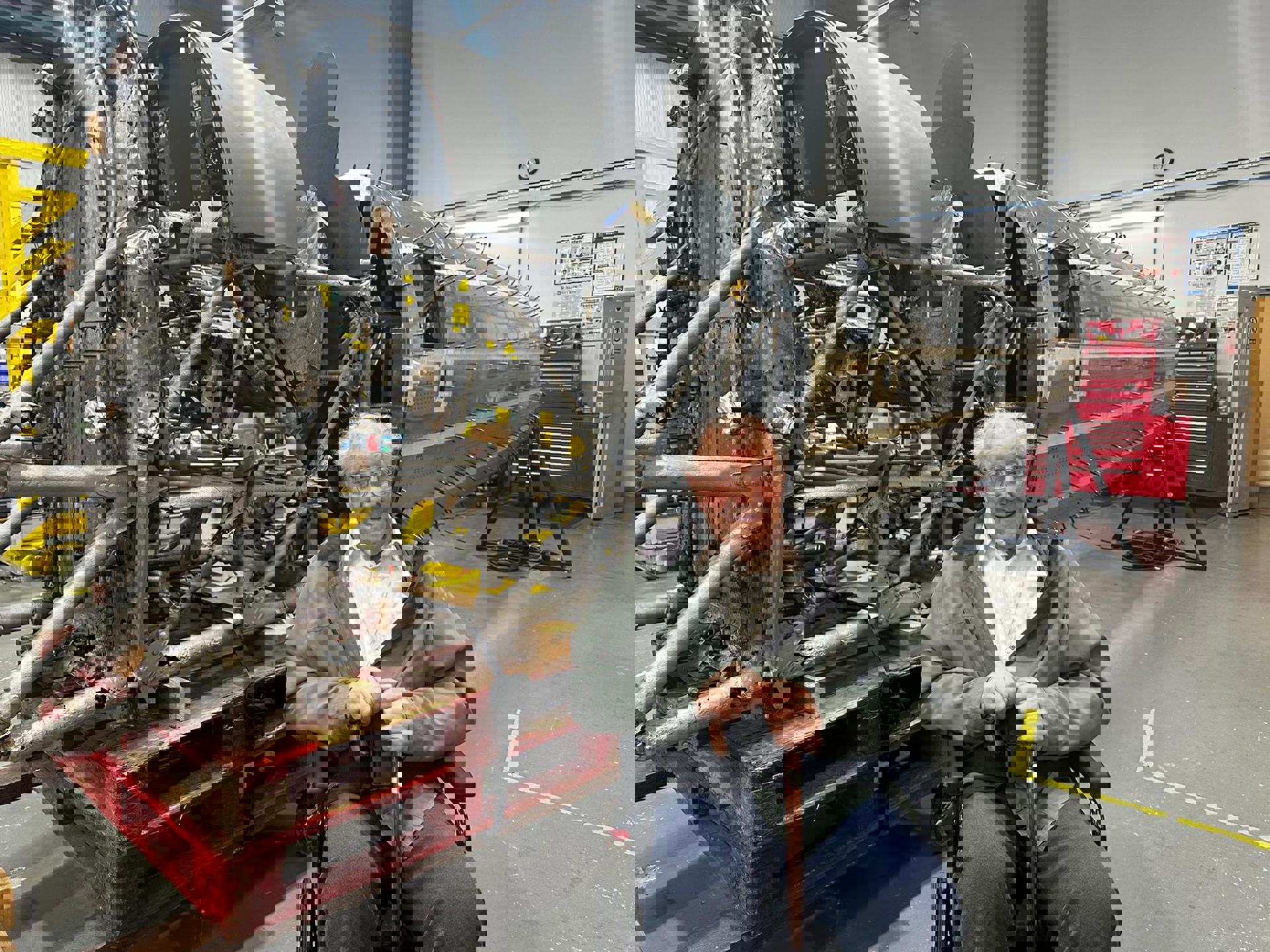 Further celebrations are in order when one of our Clients Gerry is invited as a guest of honor to see the reassembly progress of an RAF Hawker-Typhoon. During WW2 Gerry was ground crew in Holland and Germany for the RAF and worked on the Hawker-Typhoon fighter planes.