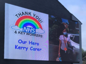 One of Right at Home North Cheshire and Leigh’s CareGivers, Kerry, featured on a key workers billboard in Warrington!