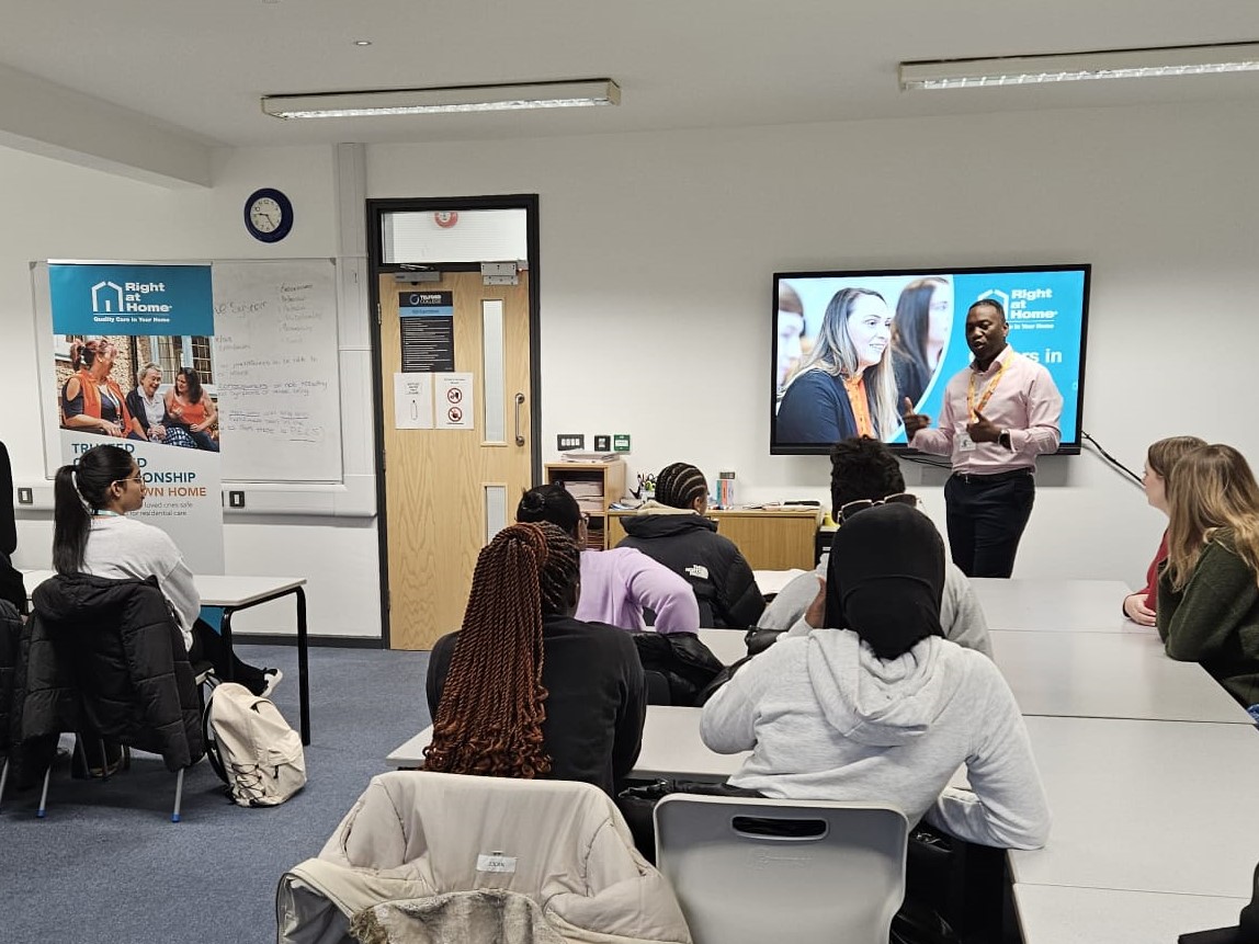 Right at Home Telford shares insights on Personal and Professional Values, Leadership Principles, and the future of care with Telford College Students.